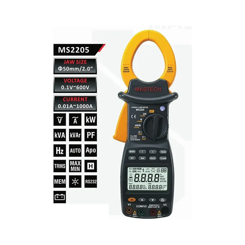La MASTECH MS2205 es una herramienta pensada para trabajos sobre sistemas eléctricos complejos. Su capacidad para medir distintos parámetros eléctricos, junto con funciones como registro de datos e interfaz RS232, la convierten en una opción útil para medición y análisis eléctrico.